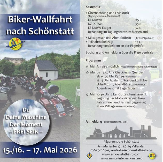 Die Motorradwallfahrt nach Schönstatt findet wieder satt vom 16.-17. Mai 2026